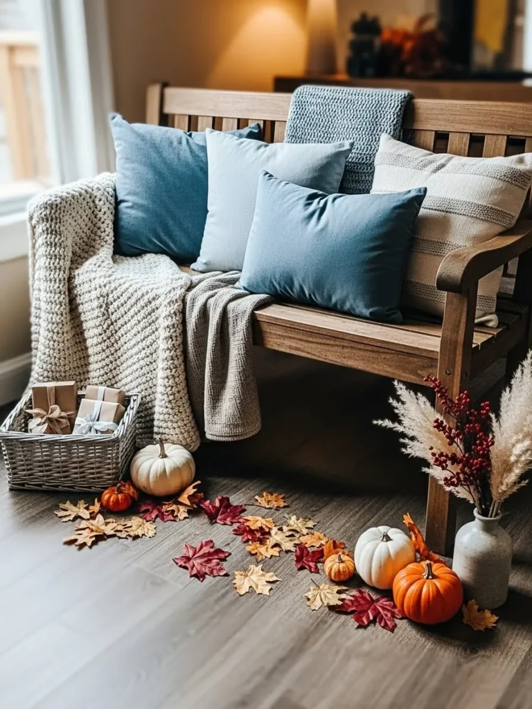 Cozy Blue Fall Entry Bench