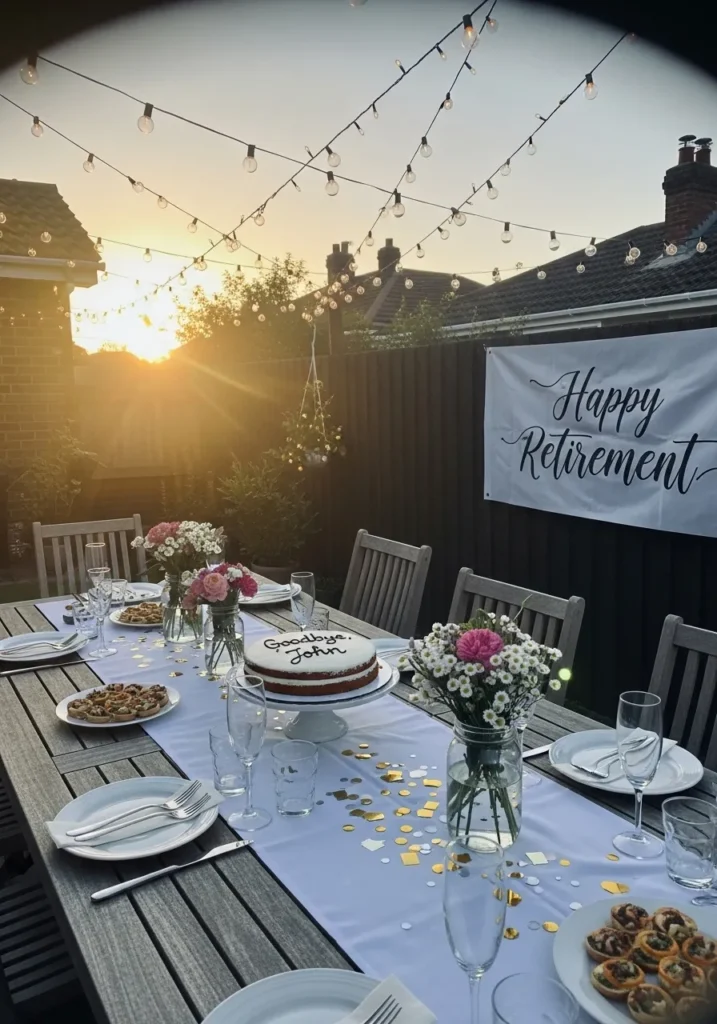 I really love this setup. It feels like the kind of dinner that lingers long after sunset. That feeling makes a retirement celebration feel truly special.