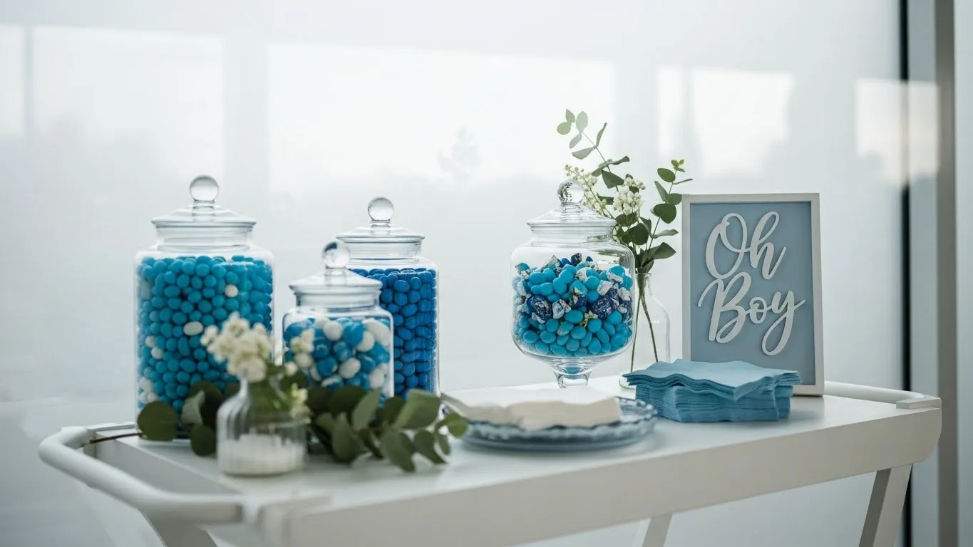 Soft Blue Candy Shelf Baby Shower Decor