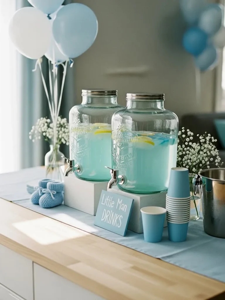Soft Blue Baby Shower Drink Station