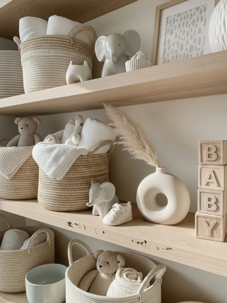 Soft Neutral Nursery Shelf Styling